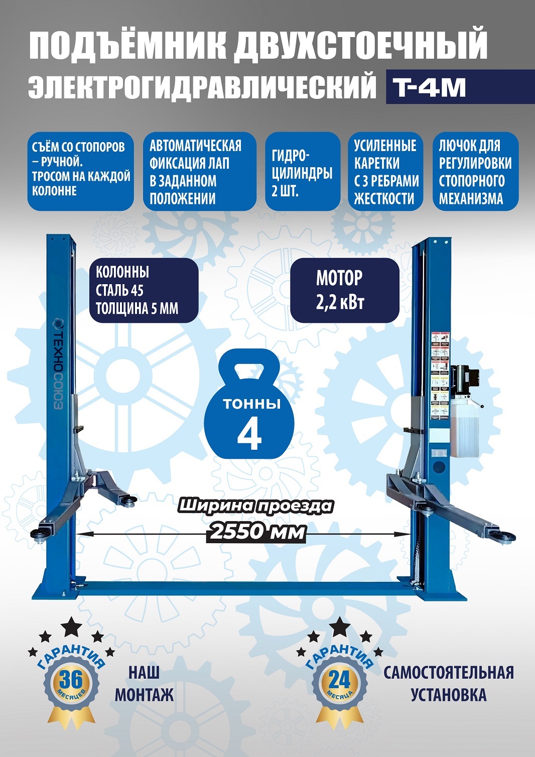 Автомобильный подъемник двухстоечный электрогидравлический Т-4М