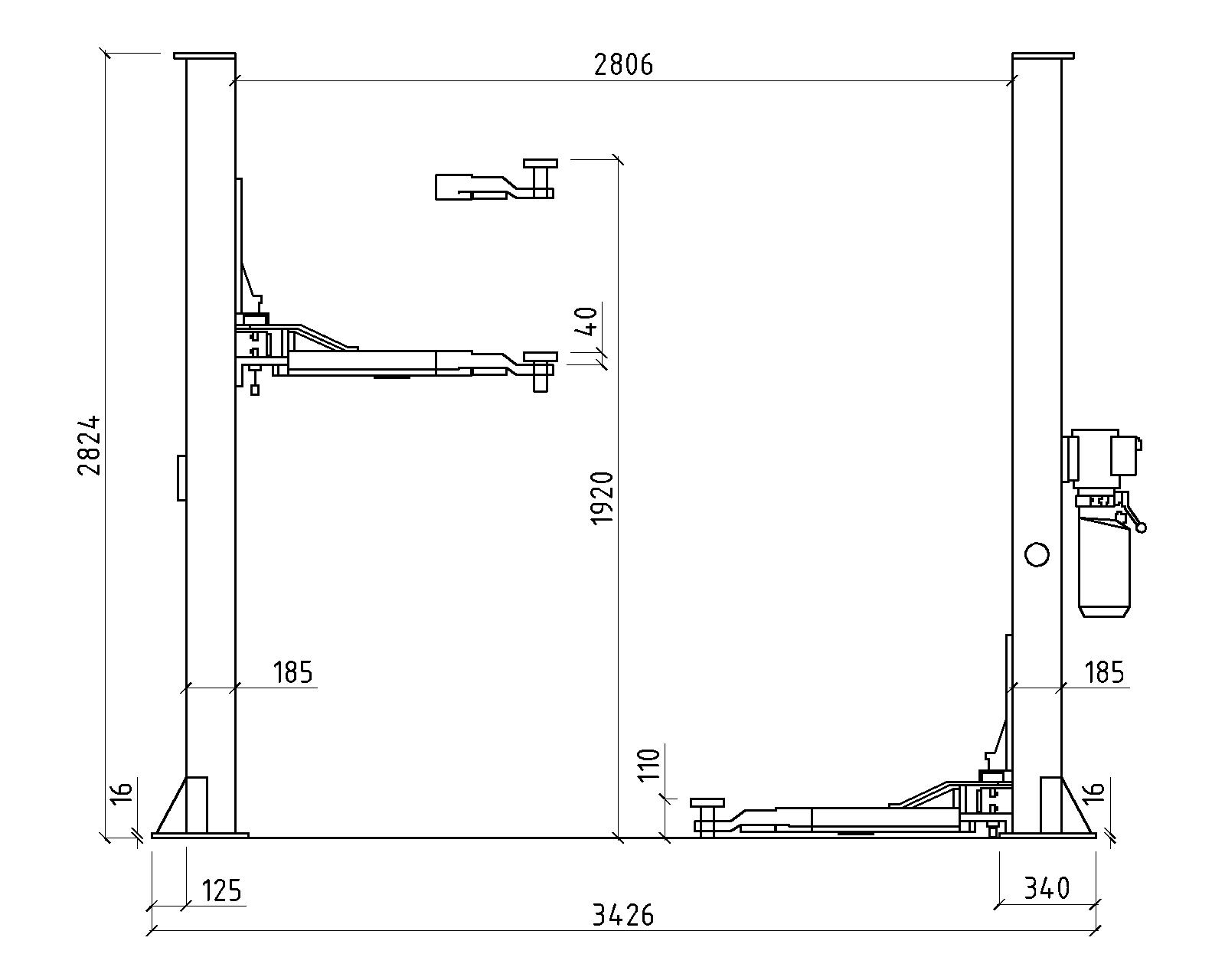 • Большая ширина проезда – 2500 мм, позволяет поднимать широкие автомобили в том числе и внедорожники.