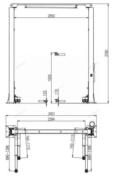 Автомобильный электрогидравлический подъемник N4121A-4T грузоподъемность 4 тонны. Предназначен для ремонта и обслуживания автомобилей, рамных внедорожников, микроавтобусов и машин с низкой посадкой. Высота подхвата-подъема 120-1920 мм, общая высота 2826 мм, внутренние расстояние между колоннами 2850 мм, Подхваты асимметричные. 2-х секционные подхваты, Длина лап 740–1150; 890–1386 мм. Питание 220/380В
