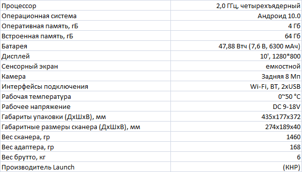 Технические характеристики Launch X-431 PRO3 Full v. 5.0 SE