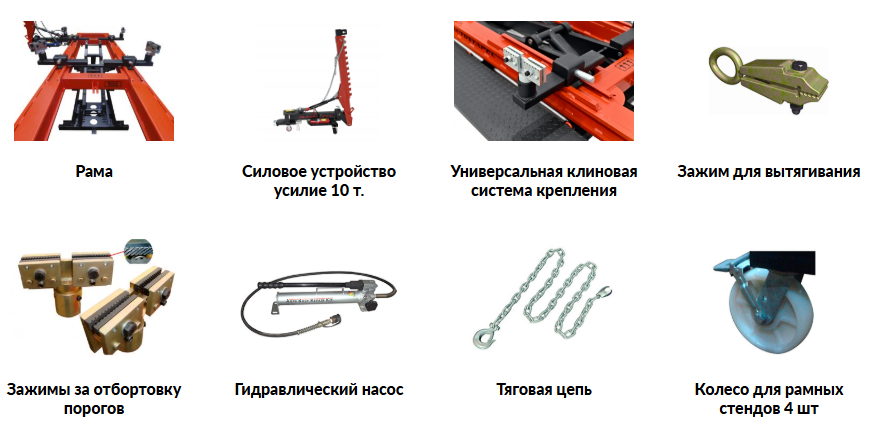 Стойки для крепления автомобиля имеют клиновую систему фиксации к раме и обеспечивают широкий диапазон позиционирования, что значительно ускоряет установку на стапель транспортных средств с разными габаритами, делая выполнение этой операции быстрой и удобной. Конструкция стоек не имеет аналогов и разработана с учетом опыта и пожеланий мастеров кузовного дела.