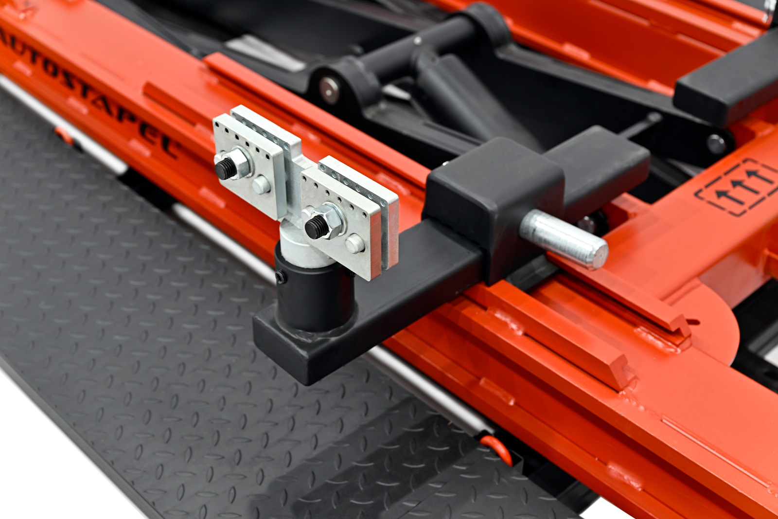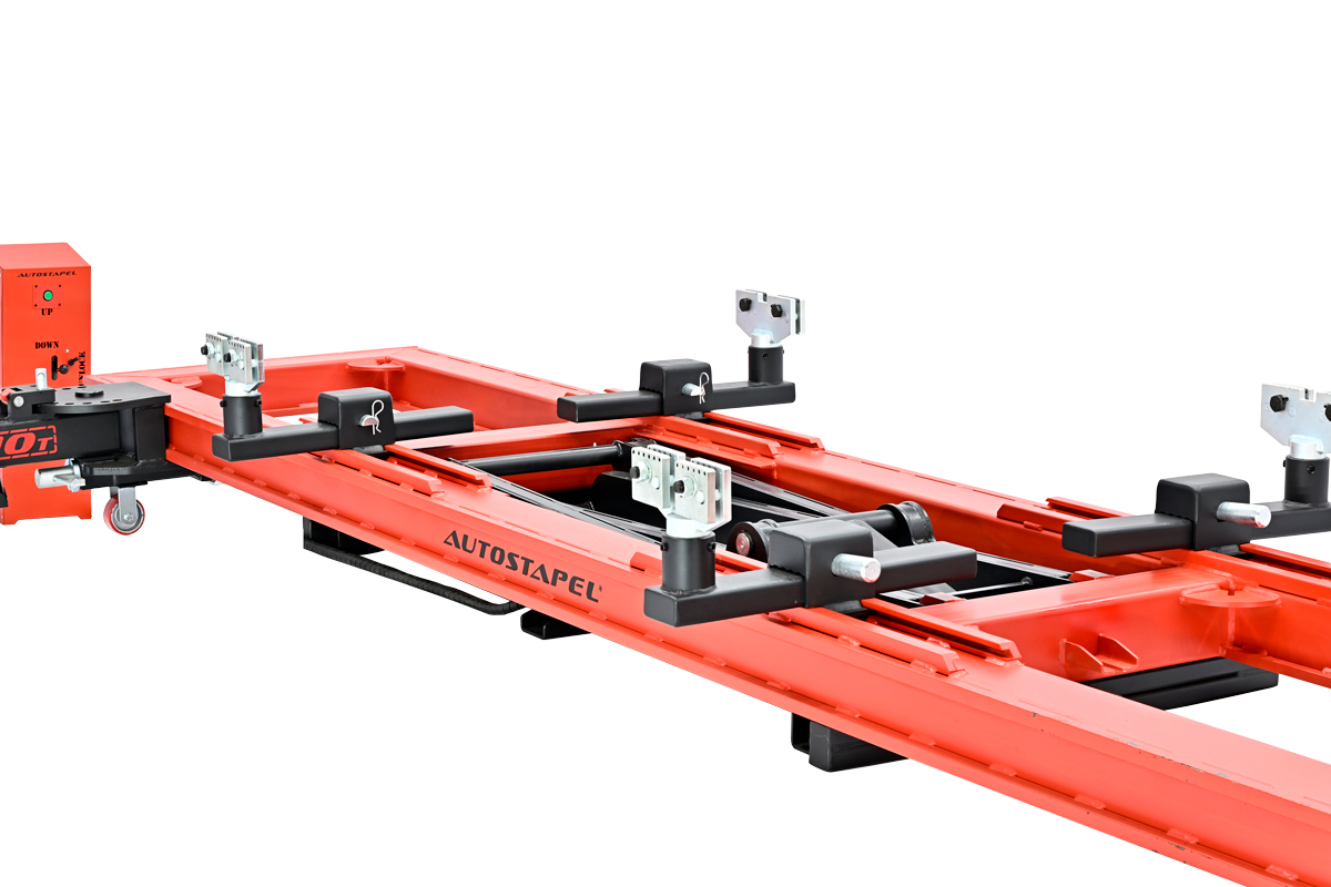 Стойки для крепления автомобиля имеют клиновую систему фиксации к раме и обеспечивают широкий диапазон позиционирования, что значительно ускоряет установку на стапель транспортных средств с разными габаритами, делая выполнение этой операции быстрой и удобной. Конструкция стоек не имеет аналогов и разработана с учетом опыта и пожеланий мастеров кузовного дела.
