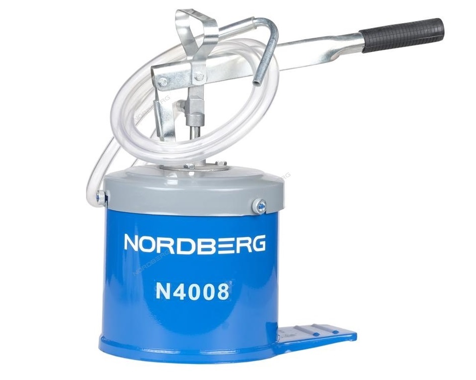 Установка для раздачи масла с ручным насосом NORDBERG N4008 представляет собой стальную емкость объемом 8 л, c ручкой для удобства перемещения в помещении автосервиса, оборудована ручным насосом, который создает давление, необходимое для раздачи масла.