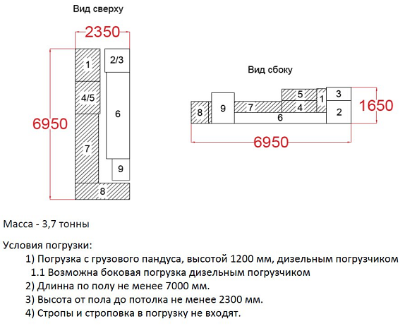 Внутренние габариты: длина -6,9 ширина - 3,9 м; высота - 2,7 м
